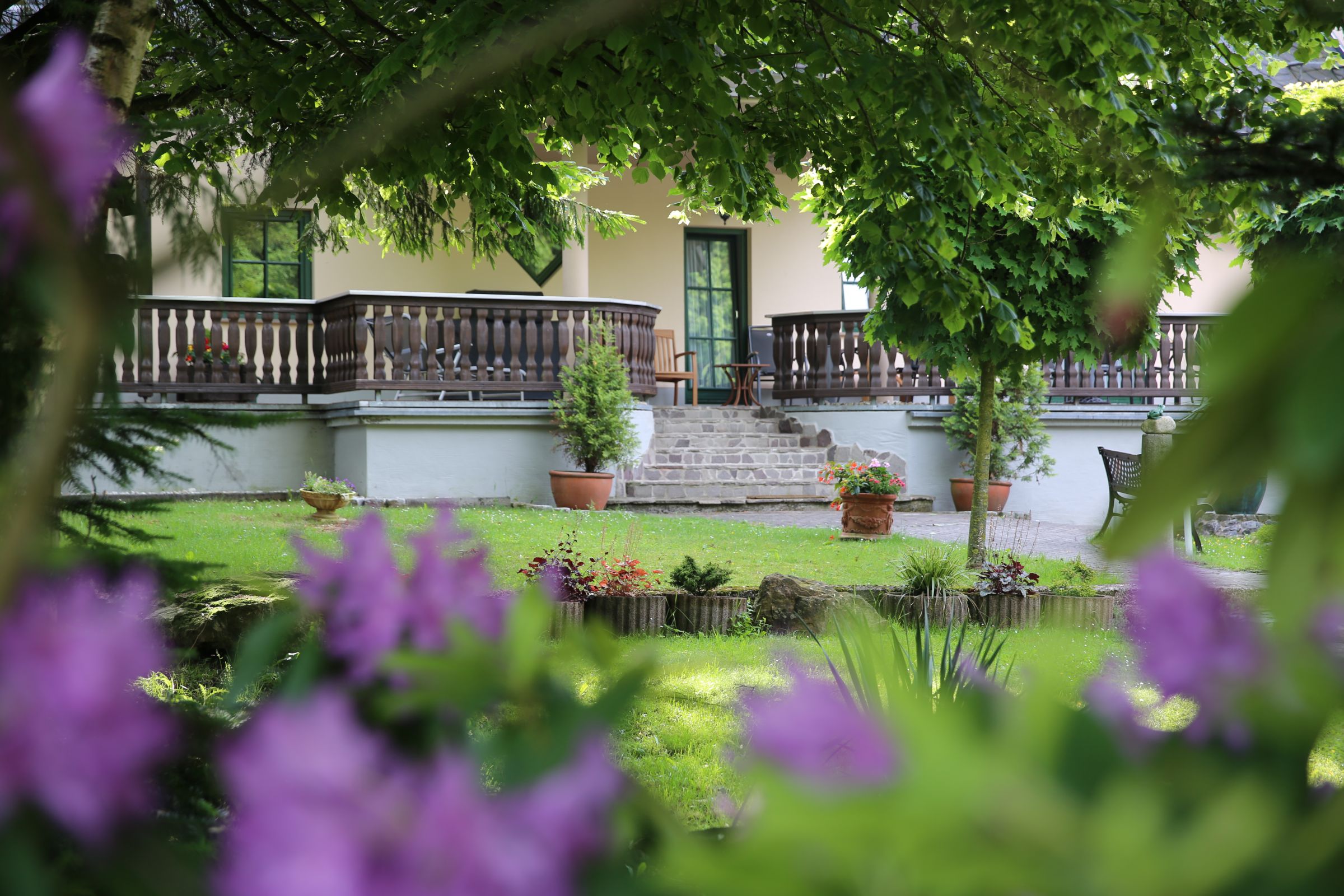 Gern genutzt von unseren Gästen werden die Terrasse mit Blick und Zugang zu unserem großen Garten. Ein kleiner Teich mit Sitzgelegenheit, der Pavillon sowie der alte Baumbestand laden zum Verweilen ein.